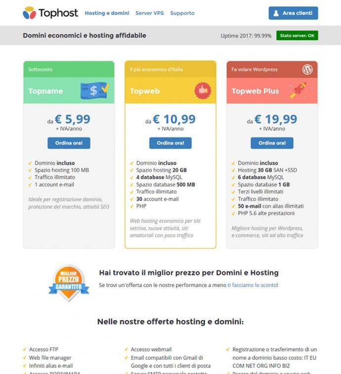 Tophost si distingue per la trasparenza dei prezzi e l’assenza di costi nascosti, rendendola una scelta popolare tra oltre 50.000 client.