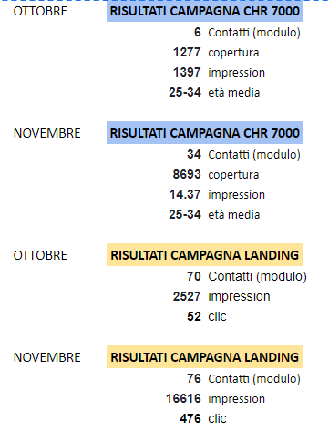 CHR 7000: Ha visto un aumento sostanziale dei contatti modulo da ottobre a novembre.